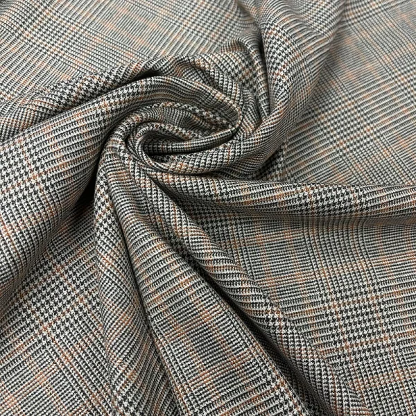 languotas kostiuminis audinys. Gerai priglunda prie kūno, standus, neglamžus.